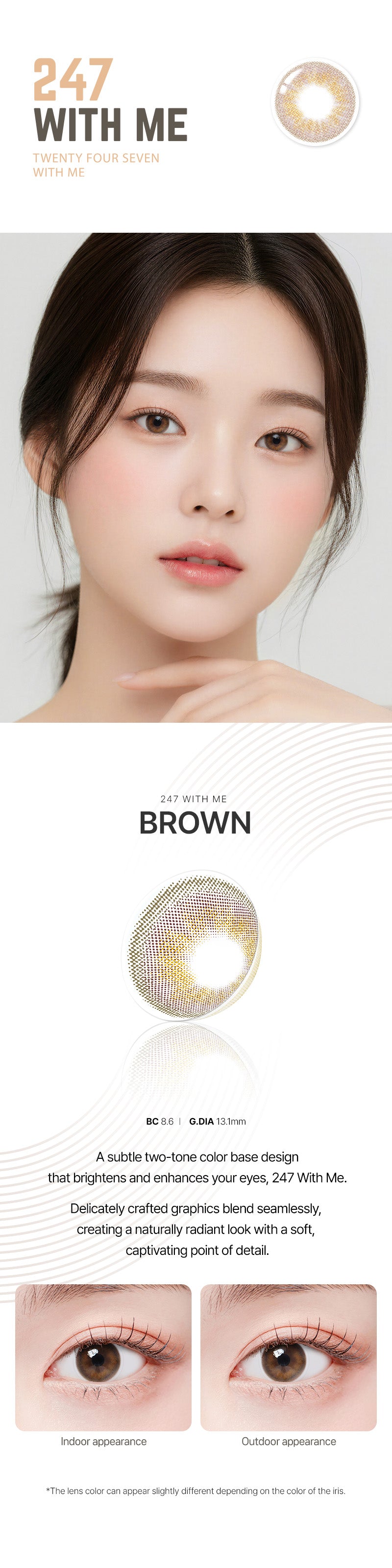 - Product: 247 With Me Brown Colored Contacts