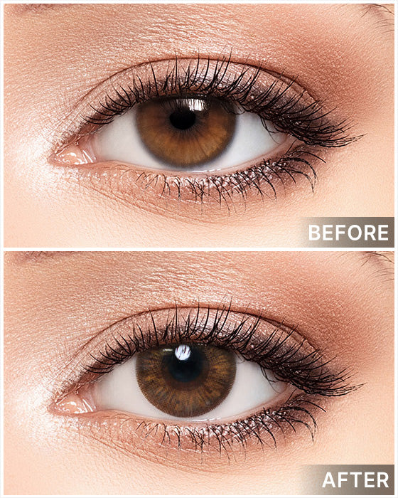 Brown contacts create a natural and gentle impression, making them perfect for everyday use. They are popular and suitable for most eye colors. If you have large black eyes, you can choose a lighter shade such as pale brown or beige to add depth to your eyes. People with small black eyes can opt for darker shades such as dark brown or chocolate to make their eyes look deeper and more attractive.