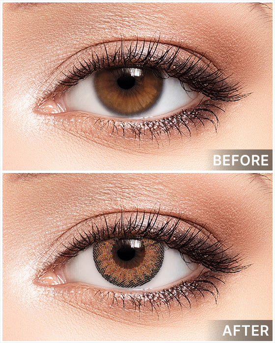 Brown contacts create a natural and gentle impression, making them perfect for everyday use. They are popular and suitable for most eye colors. If you have large black eyes, you can choose a lighter shade such as pale brown or beige to add depth to your eyes. People with small black eyes can opt for darker shades such as dark brown or chocolate to make their eyes look deeper and more attractive.