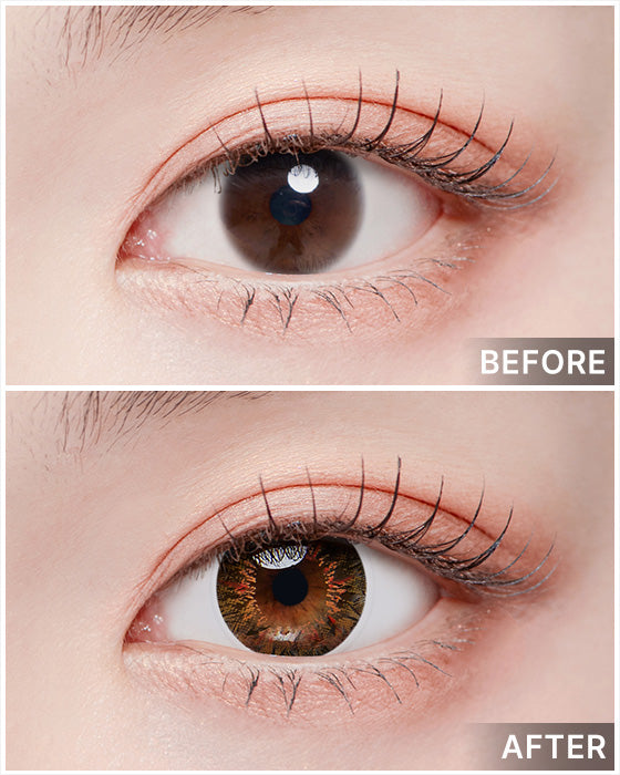 Brown contacts create a natural and gentle impression, making them perfect for everyday use. They are popular and suitable for most eye colors. If you have large black eyes, you can choose a lighter shade such as pale brown or beige to add depth to your eyes. People with small black eyes can opt for darker shades such as dark brown or chocolate to make their eyes look deeper and more attractive.