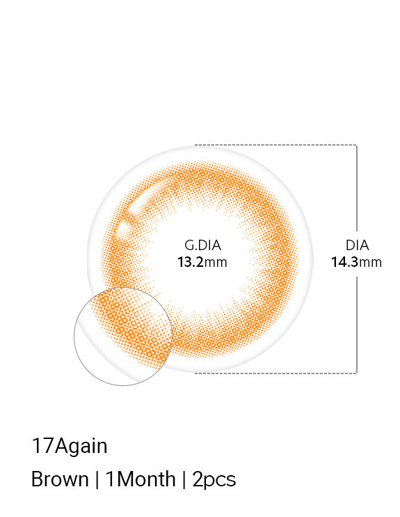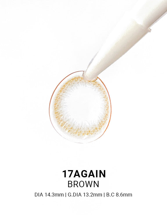 Lighten up your naturally dark eyes with 17 Again Brown contact lenses These lenses feature one, richly pigmented tone of color for a complete eye color transformation, that still looks natural.