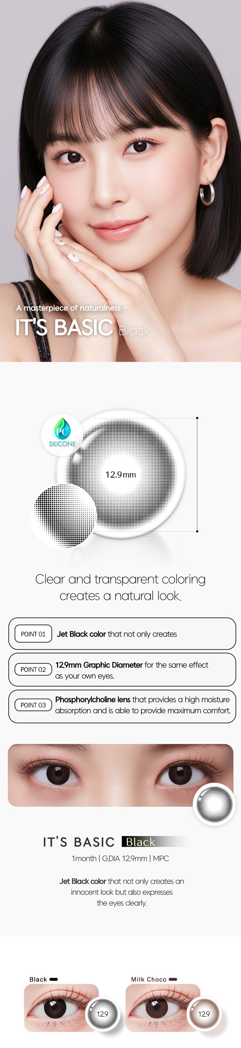 It's Basic contact lenses feature a subtle and natural design that blends seamlessly with your natural eye color, adding a touch of radiance to your eyes. Plus, these lenses are made of silicone hydrogel. This innovative material allows up to five times more oxygen to pass through the lenses, keeping your eyes hydrated for longer.
