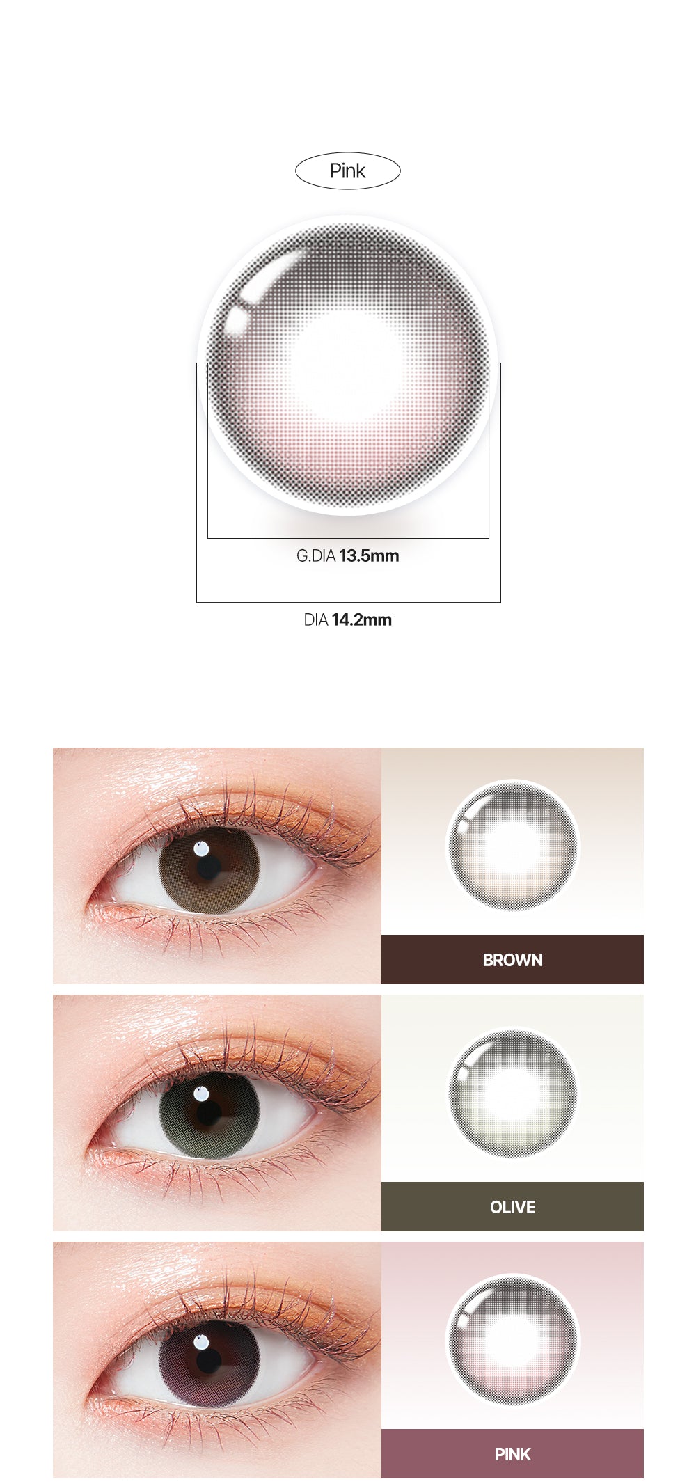 Brown contacts create a natural and gentle impression, making them perfect for everyday use. They are popular and suitable for most eye colors. If you have large black eyes, you can choose a lighter shade such as pale brown or beige to add depth to your eyes. People with small black eyes can opt for darker shades such as dark brown or chocolate to make their eyes look deeper and more attractive.